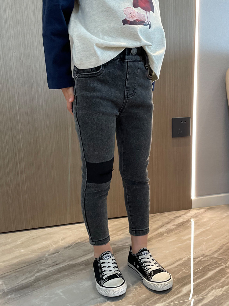 女童小脚修身牛仔裤子黑灰破洞瘦版铅笔裤紧身2026春季女孩长裤潮