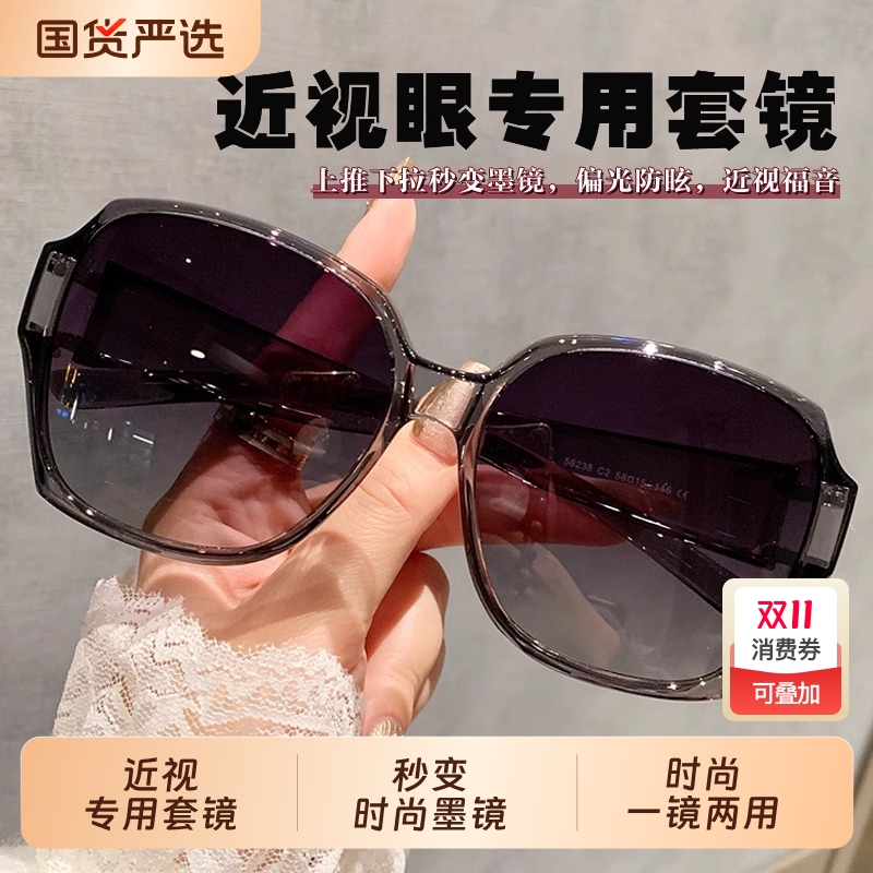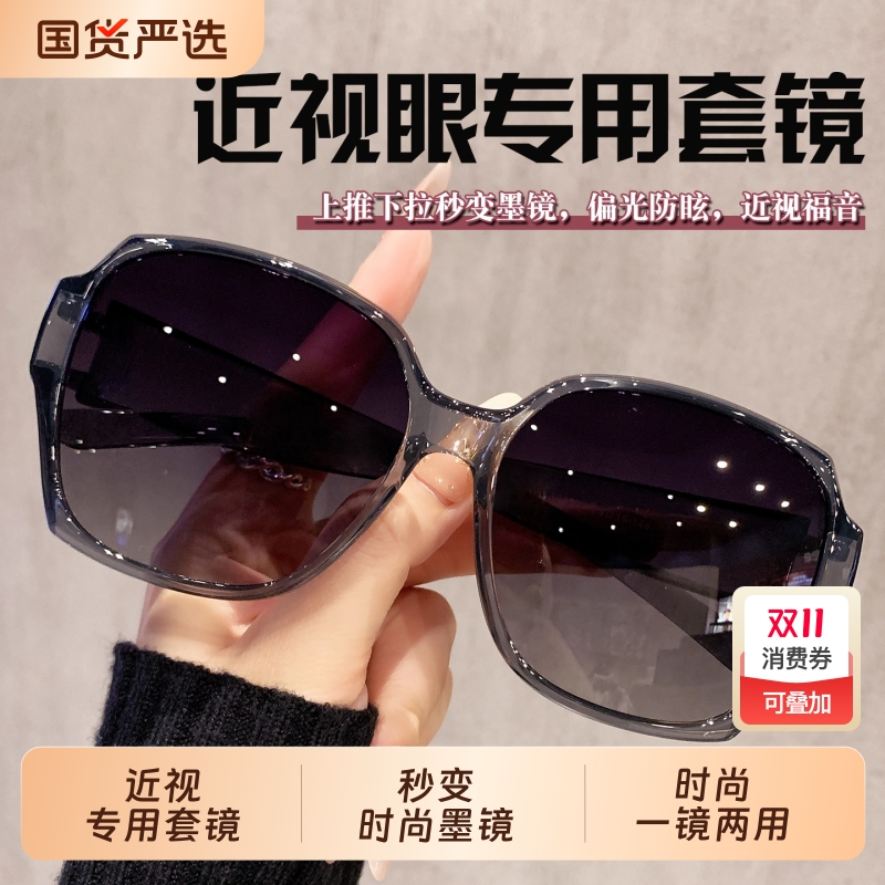 2025新款偏光墨镜可套近视镜专用套镜男女开车防紫外线太阳镜圆脸