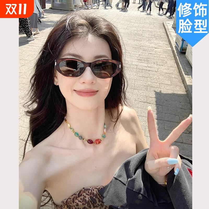 2025新款复古猫眼墨镜女款高级感潮辣妹度假偏光太阳眼镜圆脸显瘦