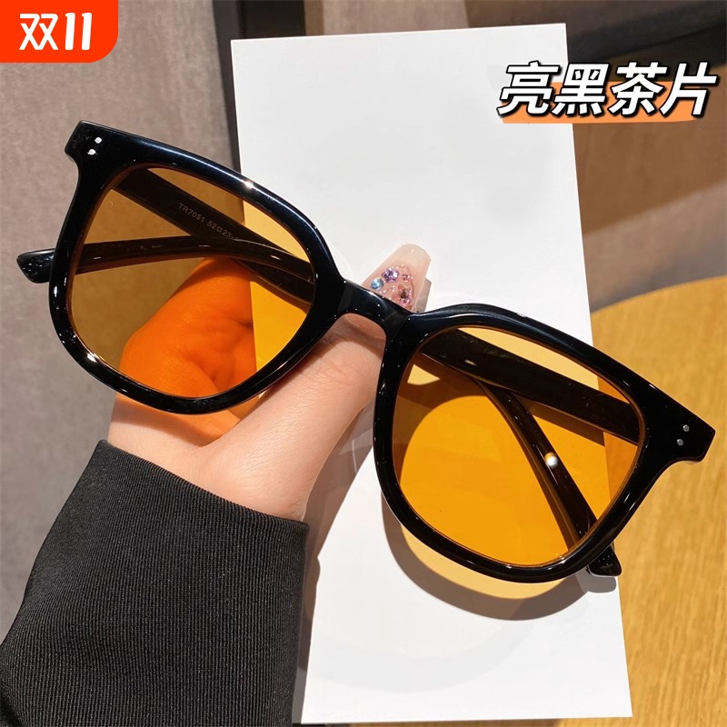 gm防紫外线墨镜女2024新款茶色太阳镜眼镜男可配近视度数偏光圆脸