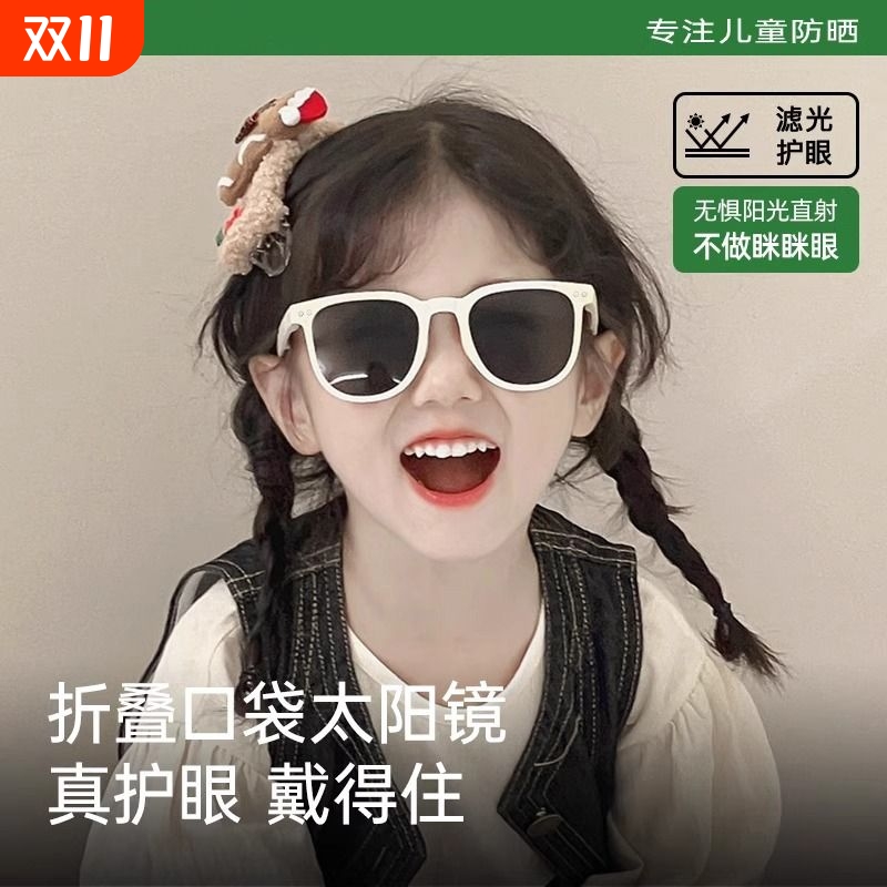 儿童墨镜2024男女童防紫外线防晒可折叠眼镜白色太阳镜偏光圆脸