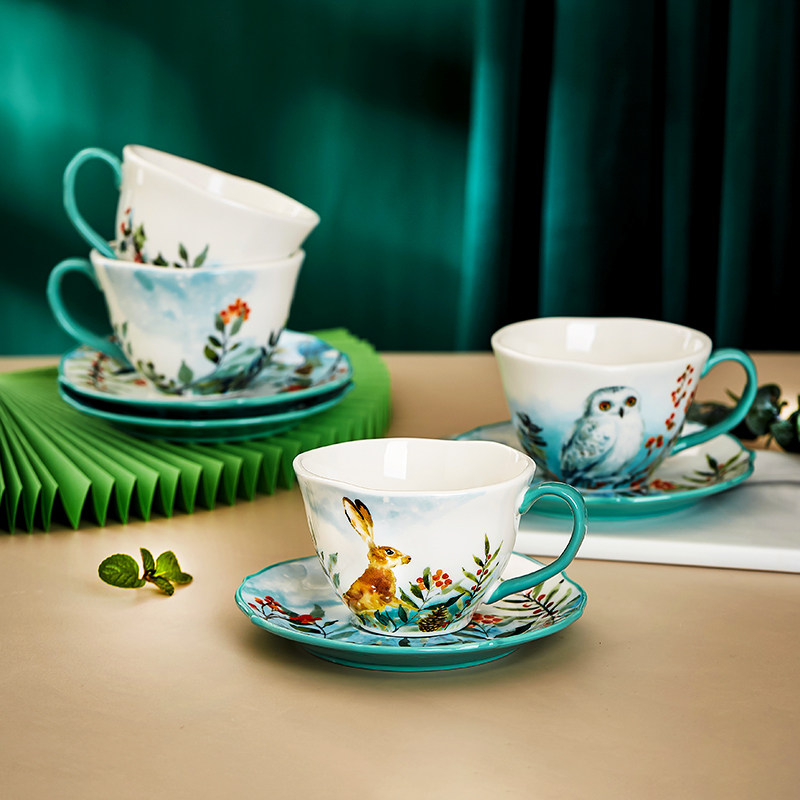 陶瓷咖啡杯碟套装家用美式动物田园风创意小精致下午茶杯情侣杯子