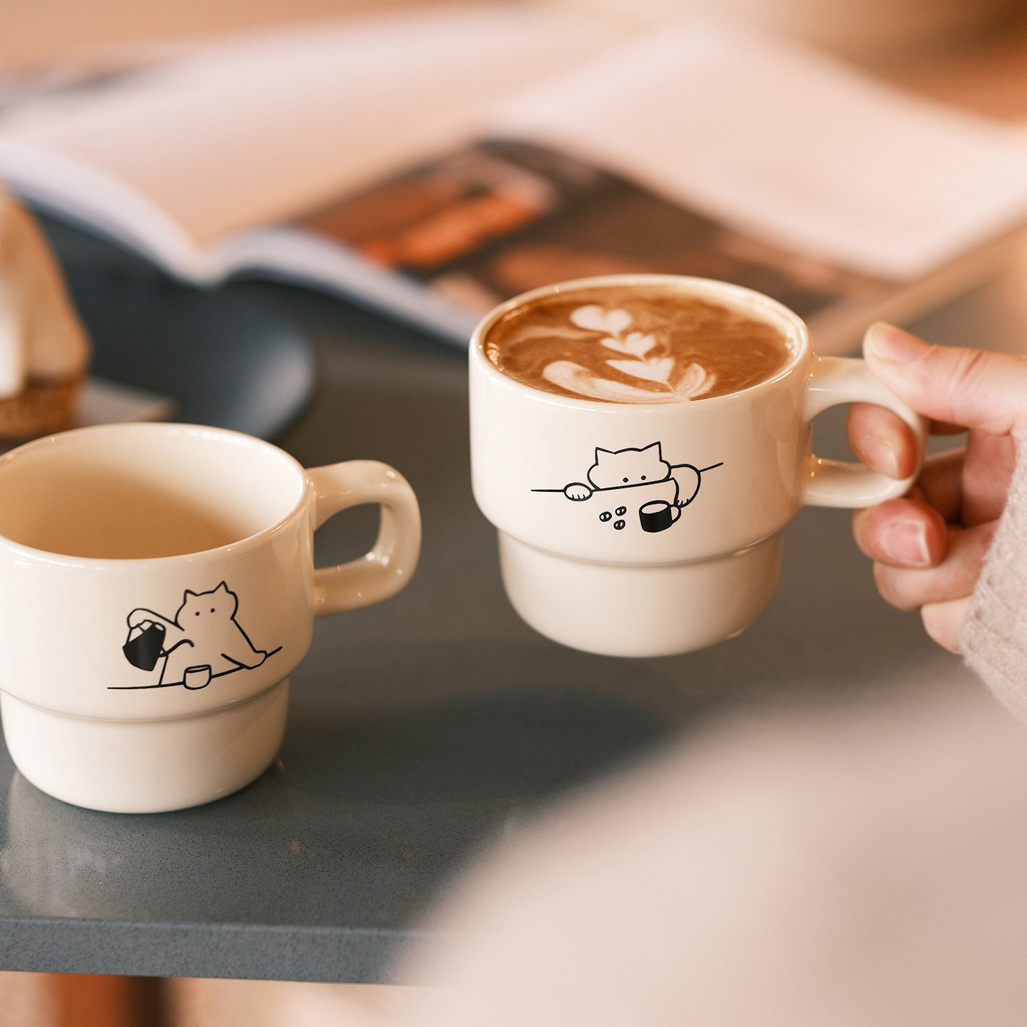 气泡招待所‘原创简笔画小猫陶瓷马克杯咖啡杯牛奶杯花茶杯情侣杯