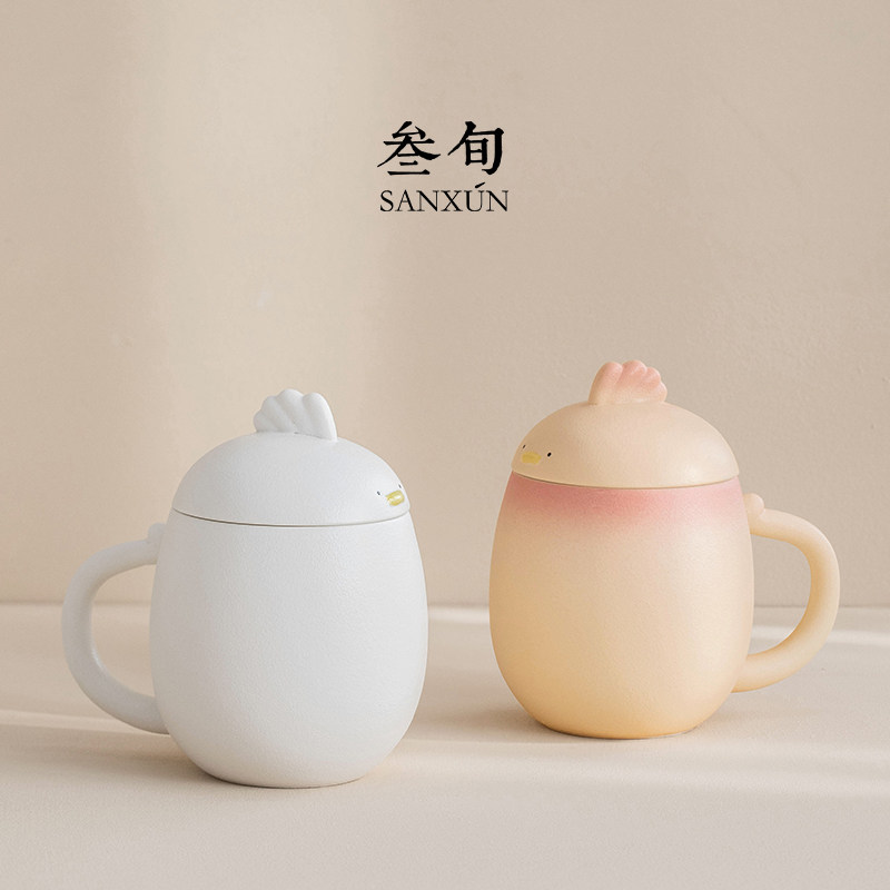 叁旬 戴胜泡茶马克杯创意陶瓷茶杯情侣杯带盖办公室过滤水杯杯子