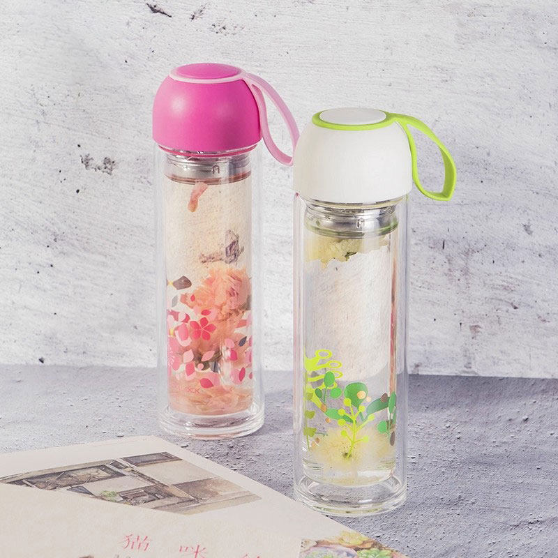 乐扣乐扣双层高硼玻璃水杯便携创意带盖办公杯子茶杯情侣杯350ml