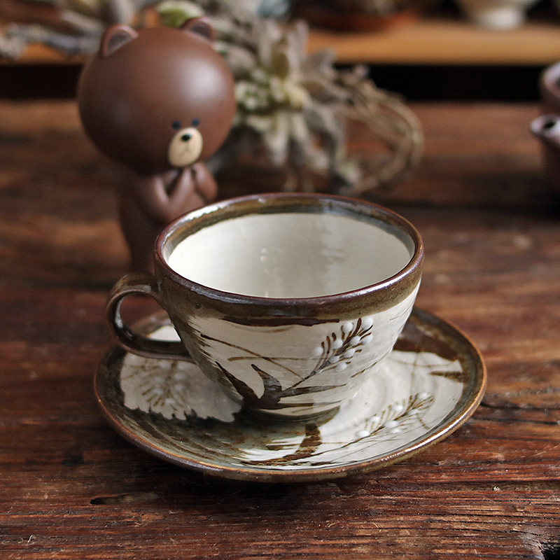 日本进口 濑户烧手绘复古陶瓷杯花卉咖啡杯 茶杯情侣杯下午茶杯
