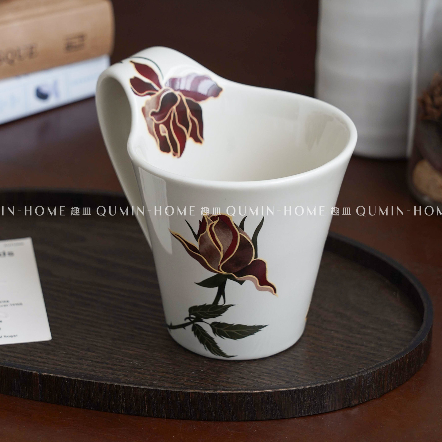 繁花似锦马克杯家用水杯陶瓷复古早餐杯高颜值茶杯情侣杯子咖啡杯