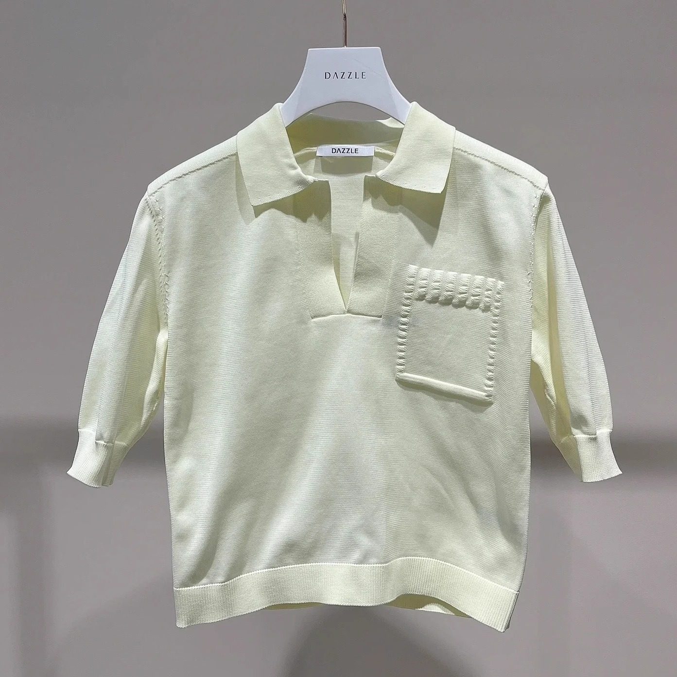 2H2E331折DAZZLE地素国内正品代购 2023夏浅黄色针织短袖吊牌1299