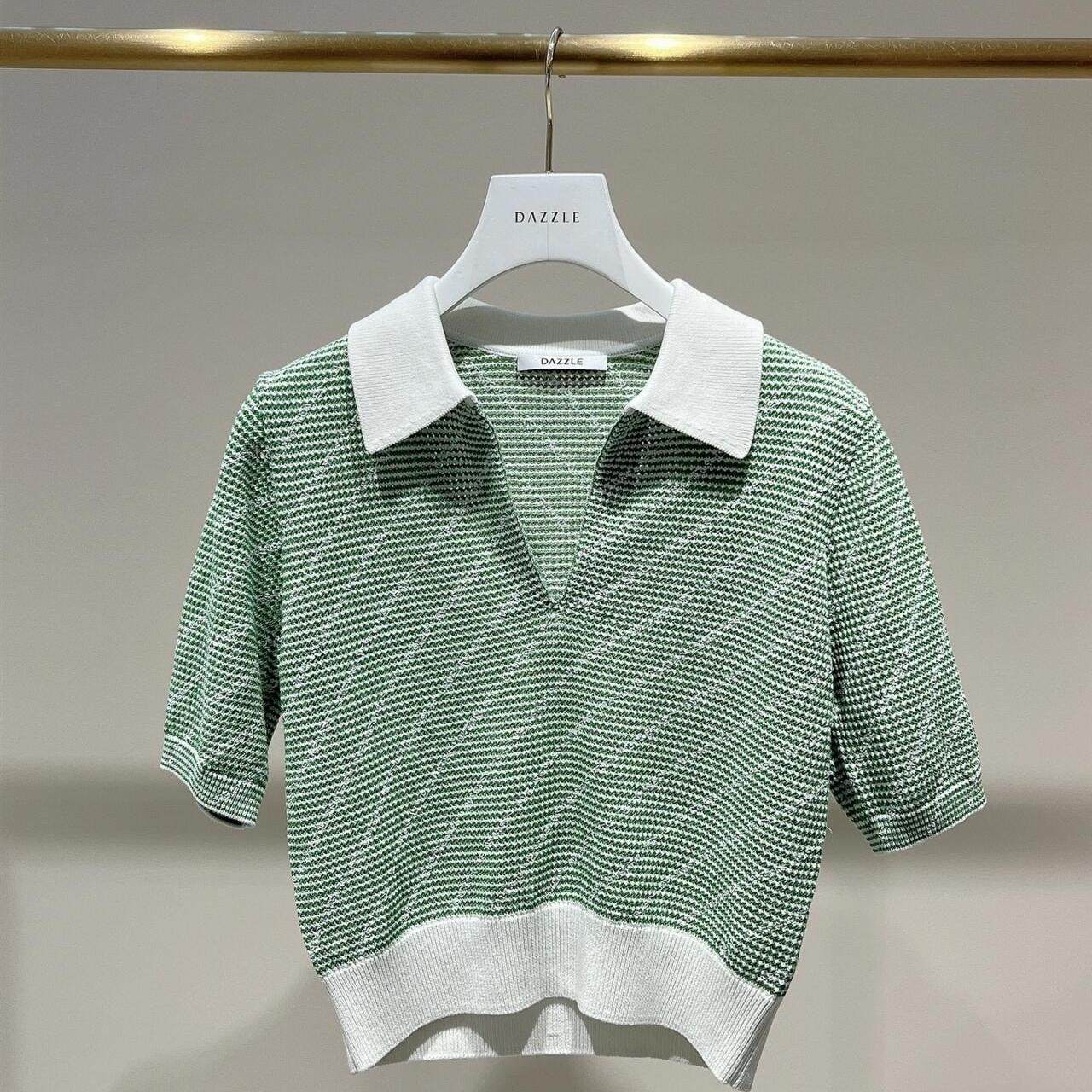 2H2E319折DAZZLE地素国内正品代购 2023夏绿色针织短袖吊牌1599