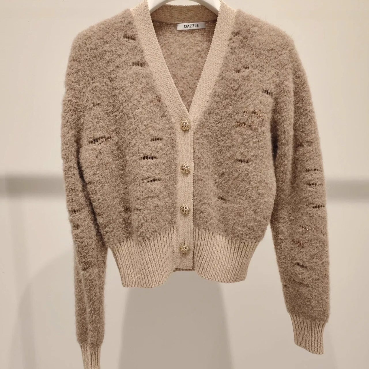 2H4E528吊牌1899大地素DAZZLE专柜正品2023冬羊绒针织圆领开衫火