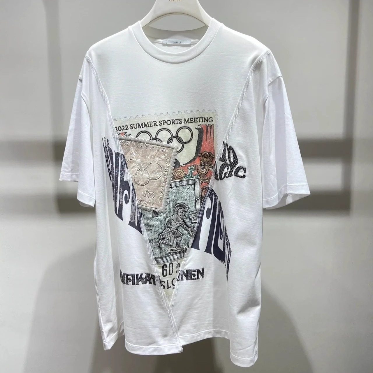 2E3B319折DAZZLE地素国内正品代购2022秋漂白色拼接大t恤吊牌1499