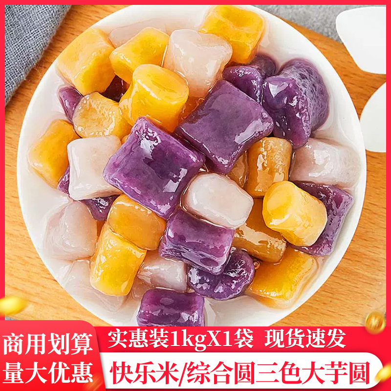 快乐米三色混合大芋圆家用彩色芋圆大丸子珍珠奶茶店专用甜品配料
