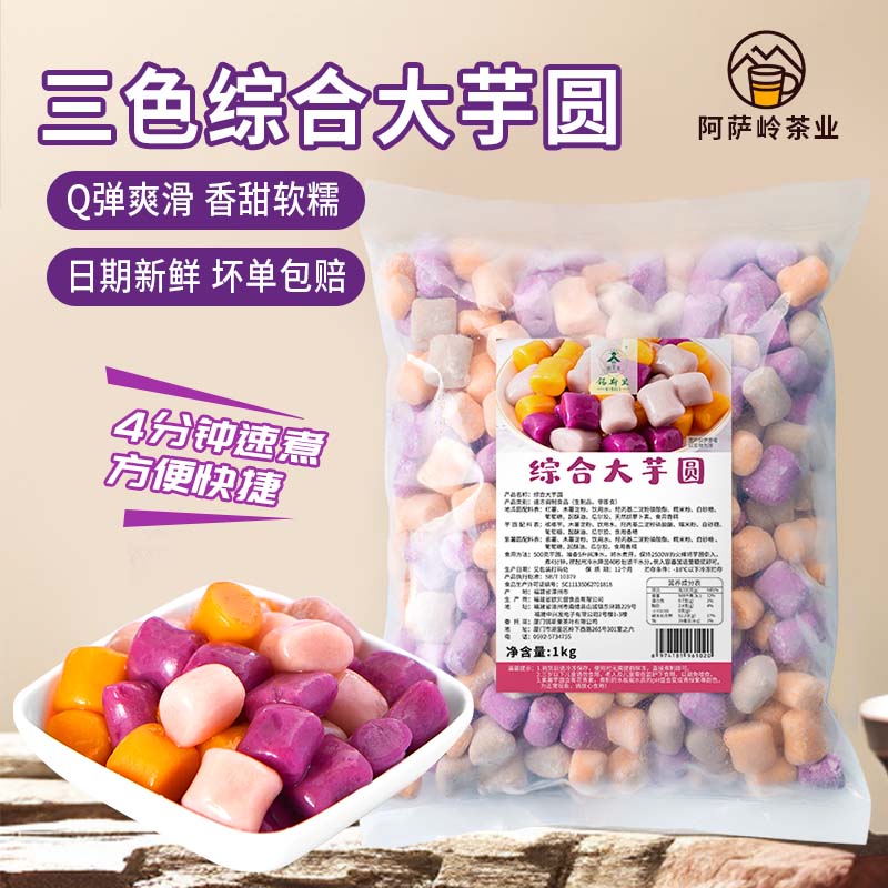 冷冻彩色大芋圆1kg三色芋圆大珍珠水果捞甜品配料奶茶店专用商用