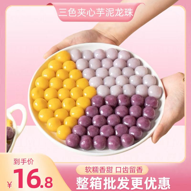 冷冻三色夹心芋泥龙珠包心香芋紫薯地瓜混合装冰粉水果捞甜品配料