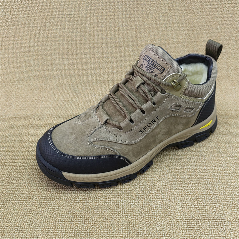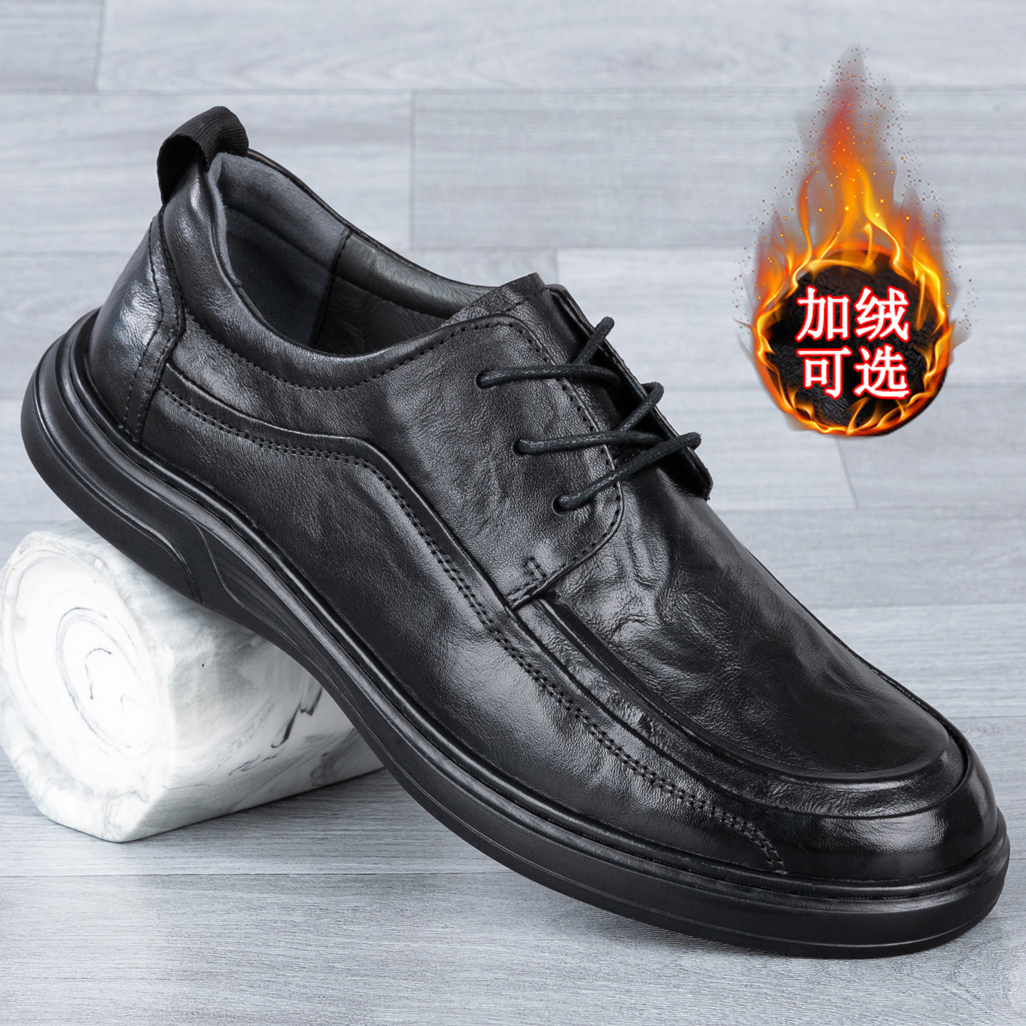 真皮休闲鞋圆头纯色云纹系带真皮皮鞋防滑休闲鞋加绒加棉保暖男鞋
