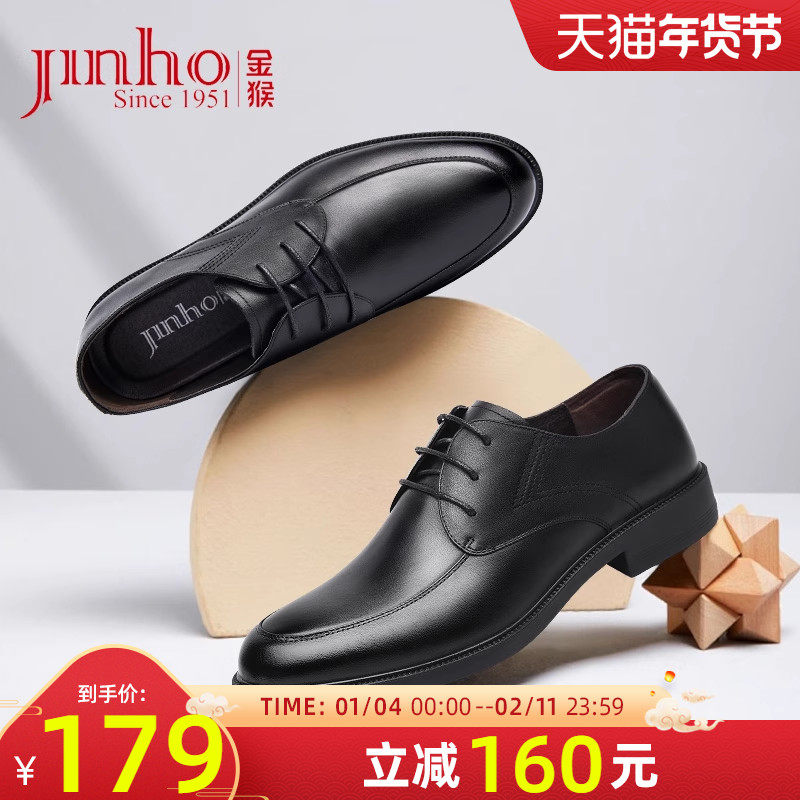 金猴官方旗舰店正品商务正装男鞋通勤真皮系带西装圆头英伦风皮鞋