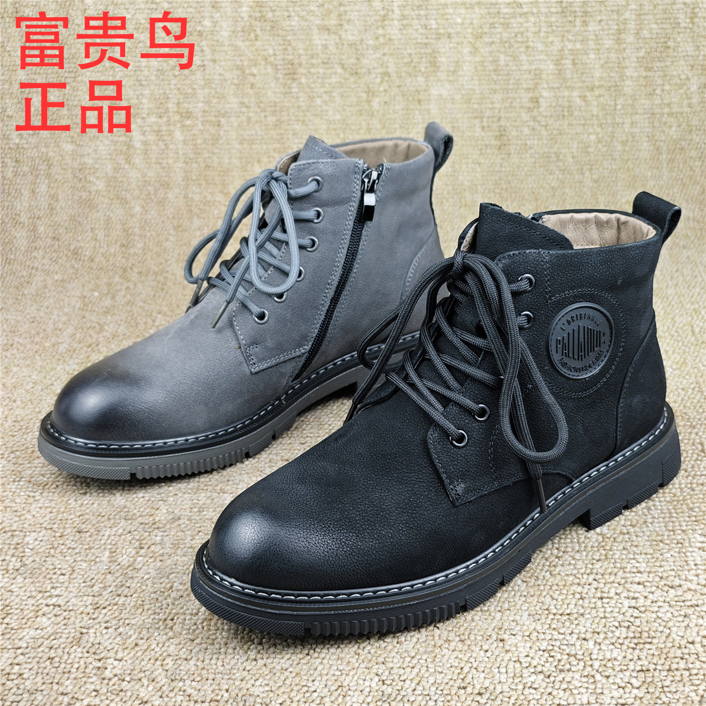 商场撤柜真皮男鞋圆头系带男靴子休闲马丁靴牛皮单里高帮防滑皮鞋