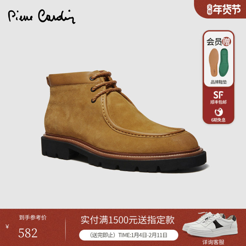 皮尔卡丹男鞋真皮绒面系带圆头潮流百搭短筒轻底高帮马丁靴靴子男