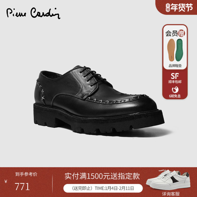 皮尔卡丹男鞋真皮手工系带圆头百搭德比鞋男婚鞋潮正装商务皮鞋男