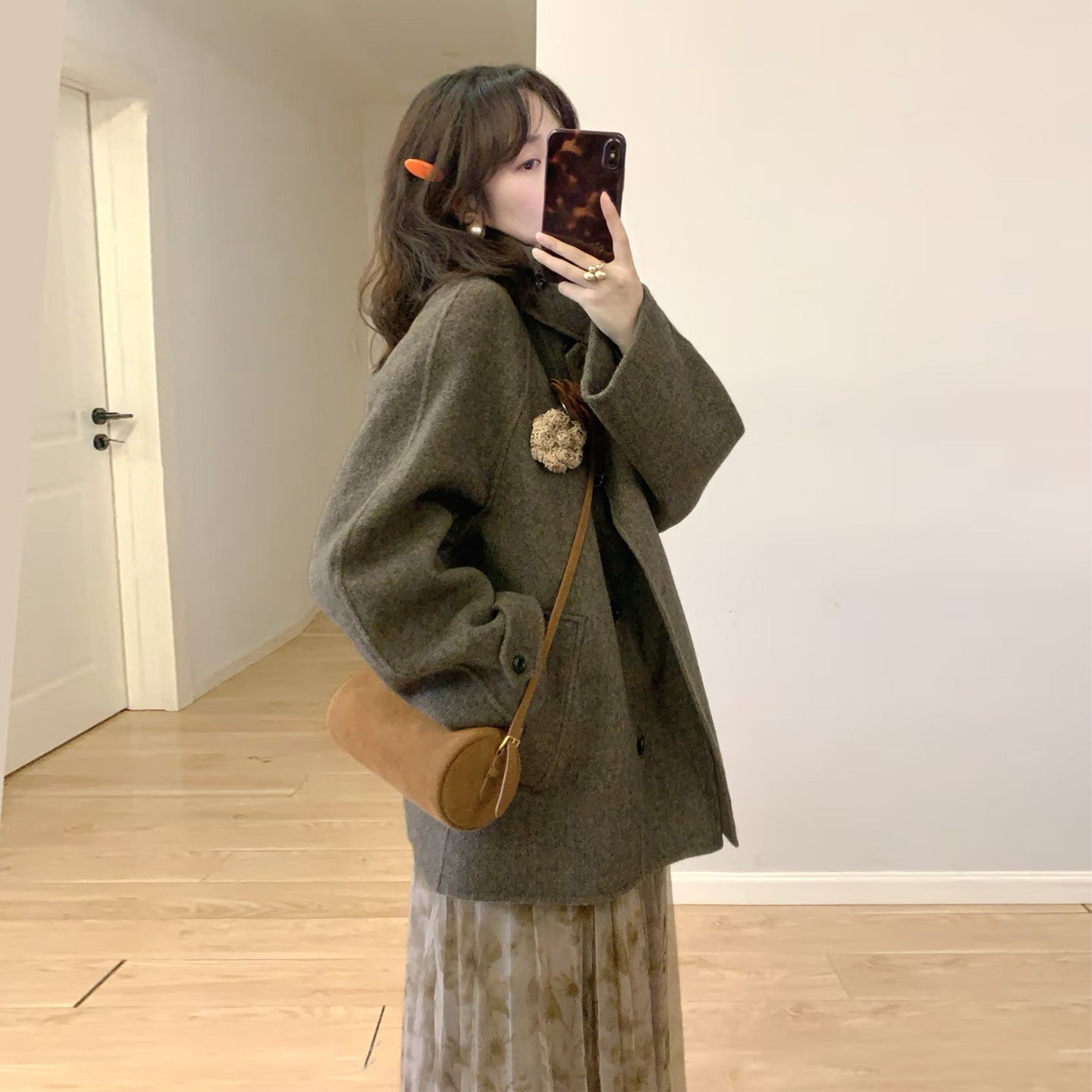 - 宽松呢子大衣