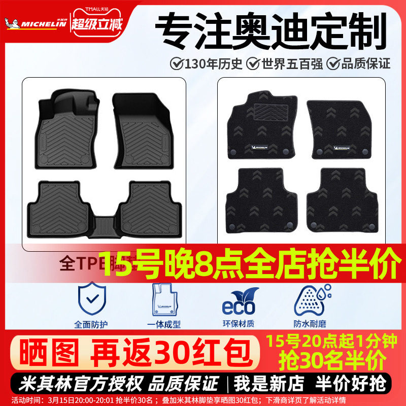 米其林全TPE汽车脚垫适用奥迪A3 A3L A4L A6L Q5L Q3 Q6L专用脚垫