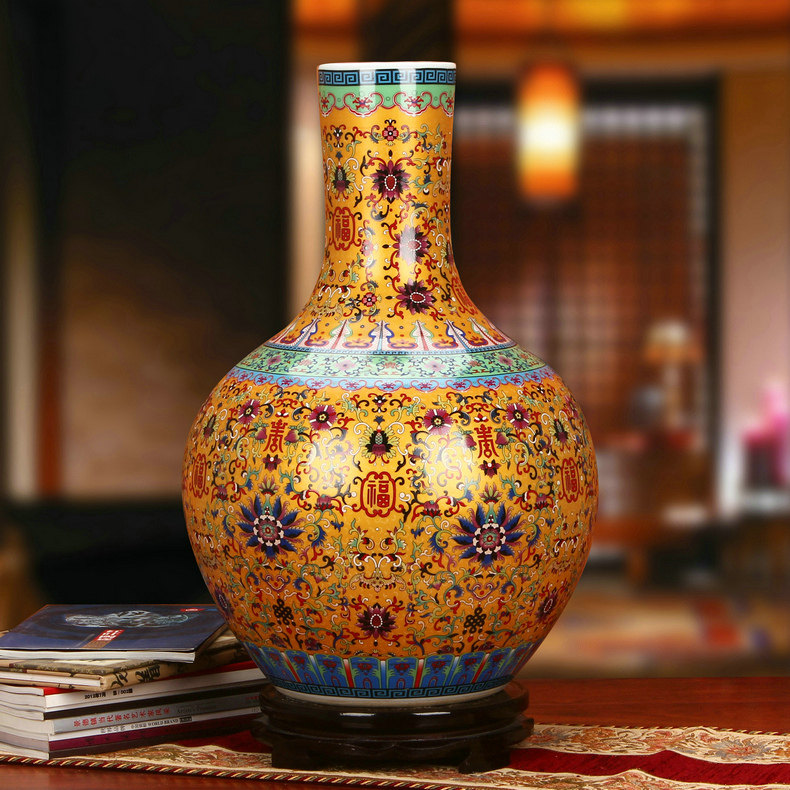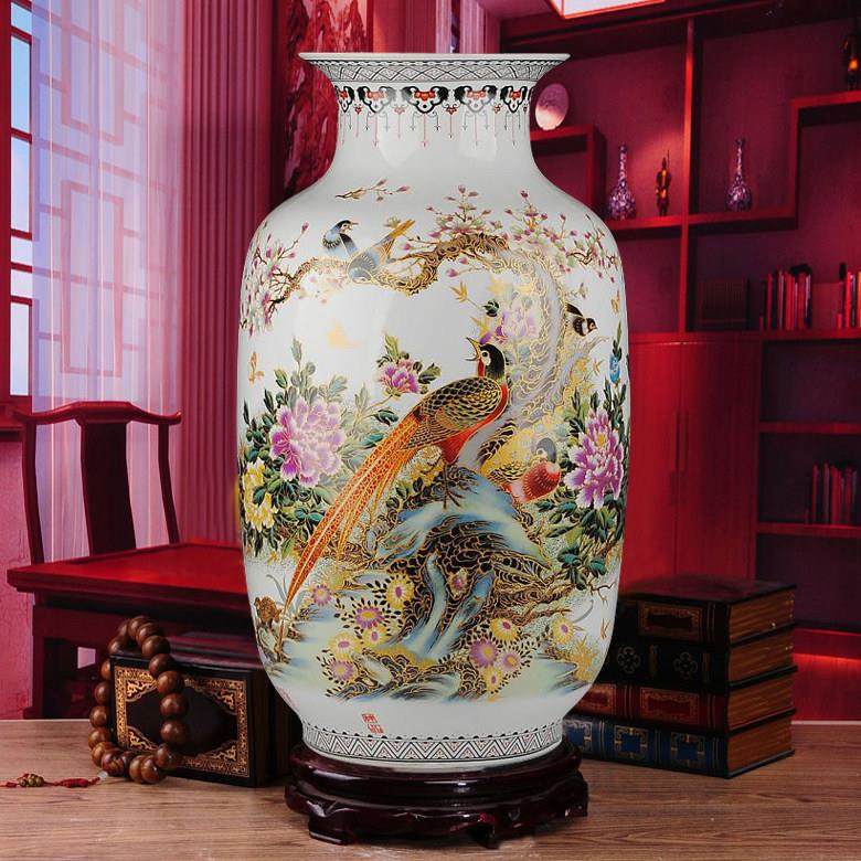 景德镇陶瓷器 仿古中式锦上添花落地大花瓶 客厅家居装饰品摆件