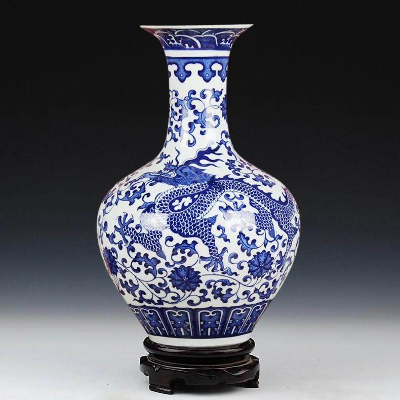景德镇陶瓷器 仿古青花瓷花瓶釉下龙纹赏瓶 现代家居客厅装饰摆件