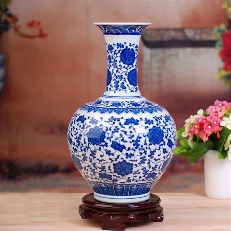 景德镇陶瓷器仿古典青花瓷古玩中号花瓶家居装饰品酒柜博古架摆件