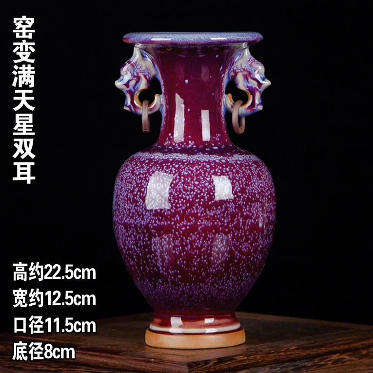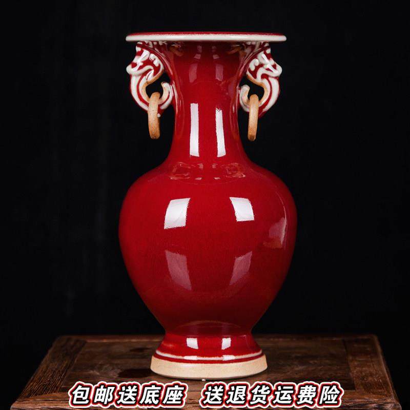 精选景德镇陶瓷器 仿古s钧瓷郎红双耳小花瓶 客厅中式博古架工艺