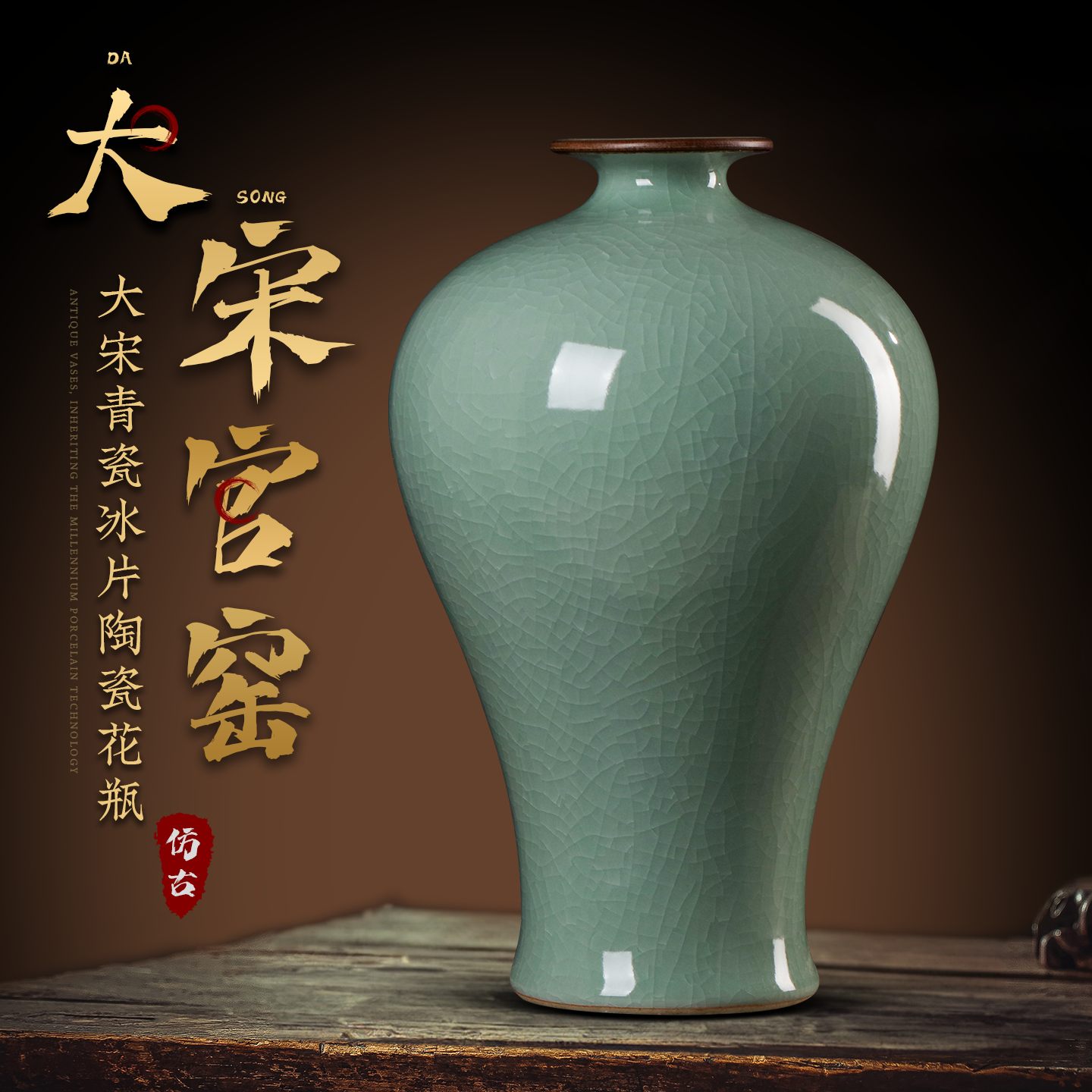 景德镇陶瓷器 仿古官窑开片裂纹花瓶客厅书房卧室家居装饰工艺品