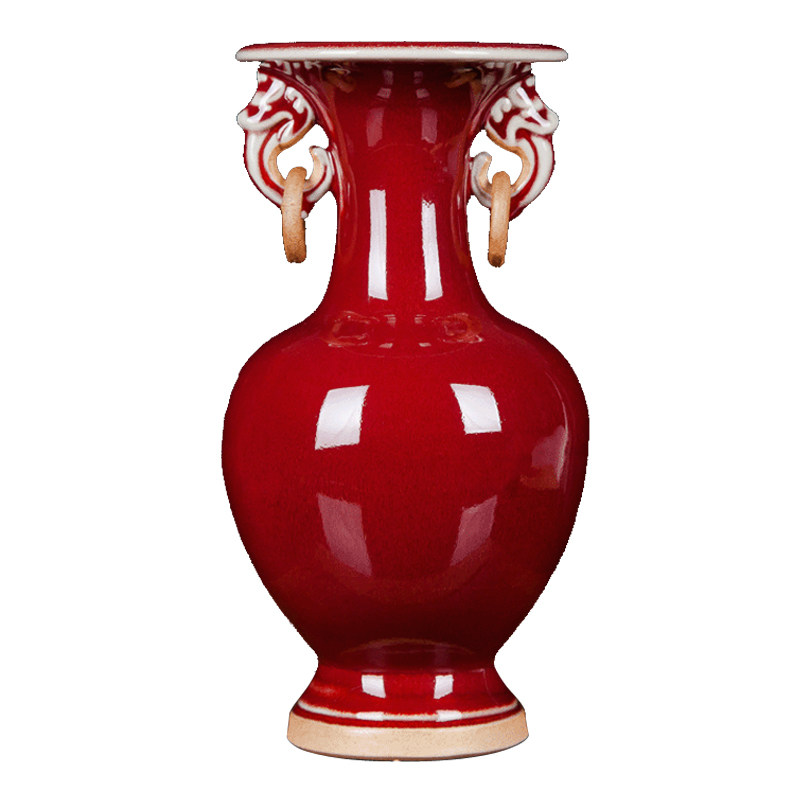 优选景德镇陶瓷器 仿古钧t瓷郎红双耳小花瓶 客厅中式博古架工艺