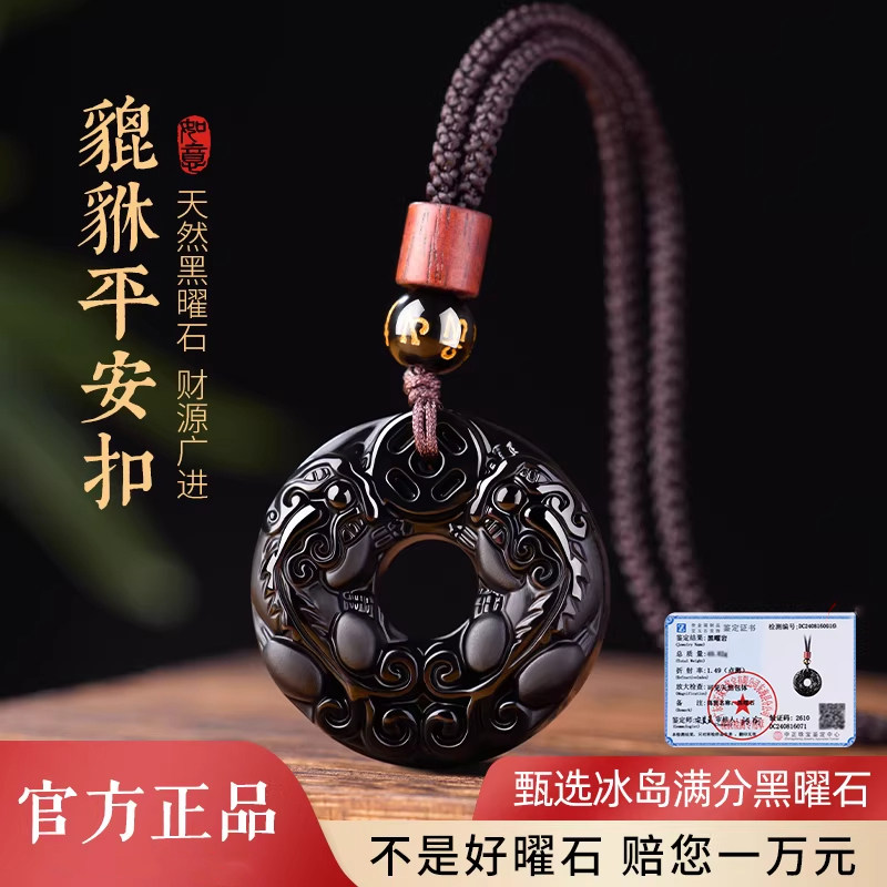 天然黑曜石吊坠官方旗舰店正品平安扣招财貔貅项链本命年挂件礼物