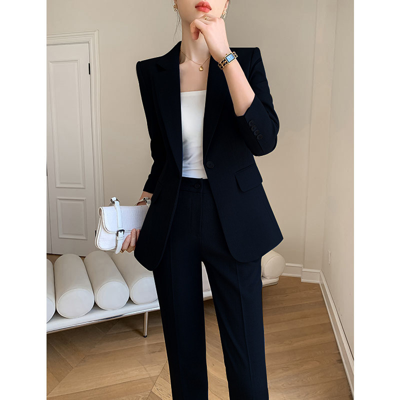 秋冬新款黑色西装工作服职业套装修身收腰气质显瘦小脚裤正装套装