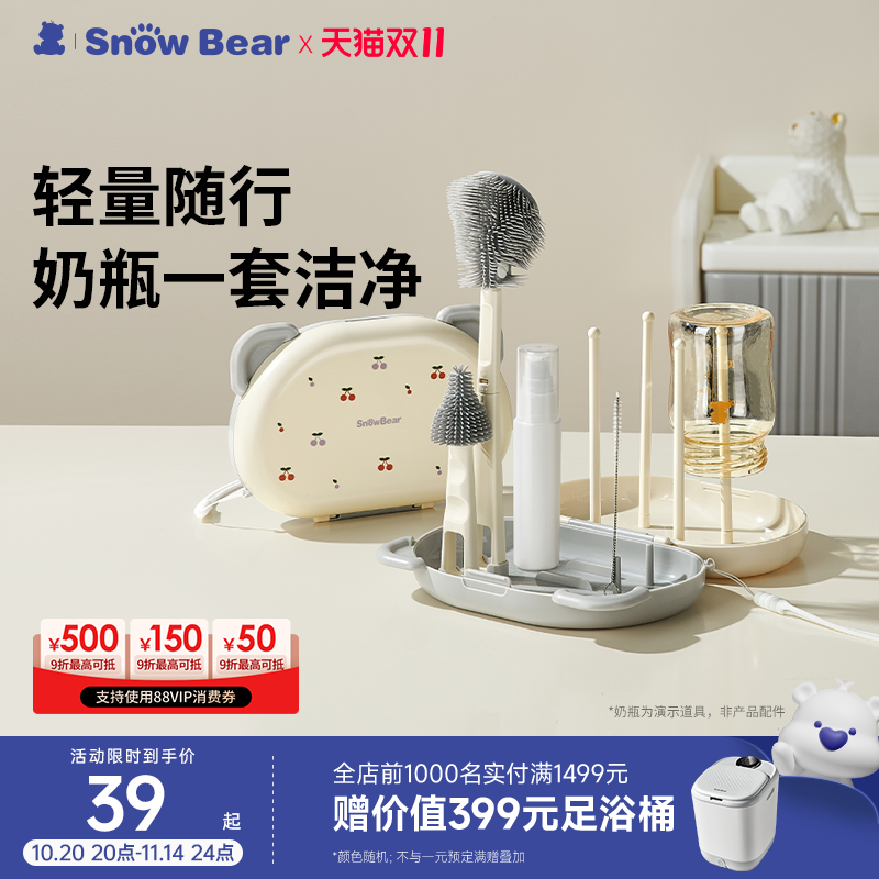 SnowBear小白熊奶瓶清洗刷星球便携新生婴儿工具套装专用硅胶刷子