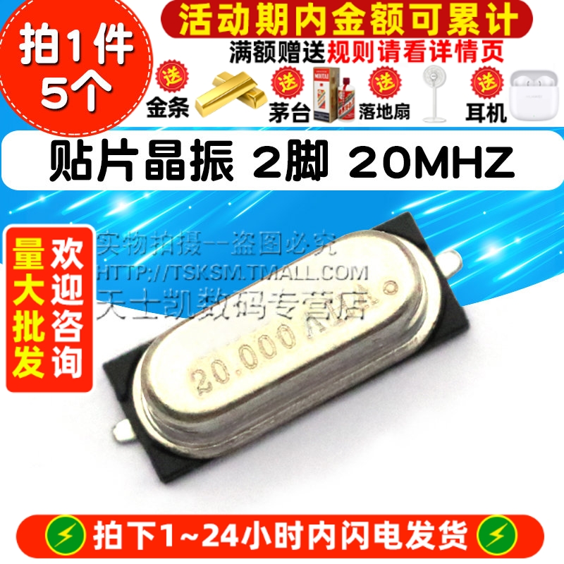 贴片晶振 20M 贴片2脚 20MHZ 49SMD 石英晶体 无源晶振 (5个)