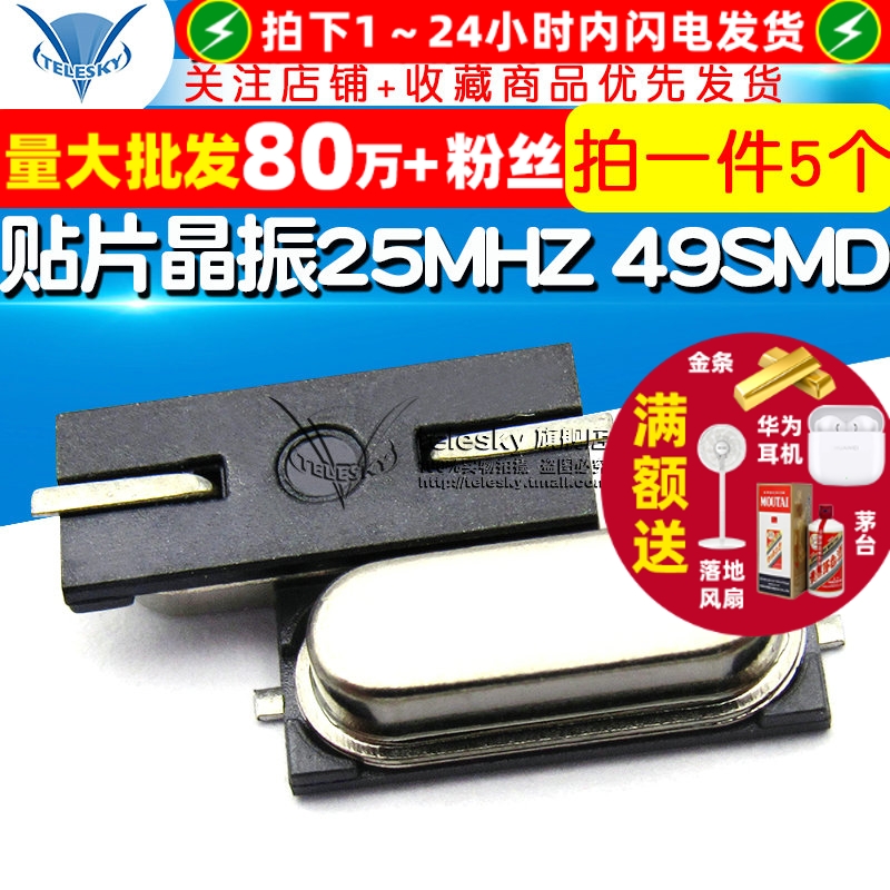TELESKY 贴片晶振 25M 2脚 25MHZ 49SMD石英晶体无源晶振 (5个)