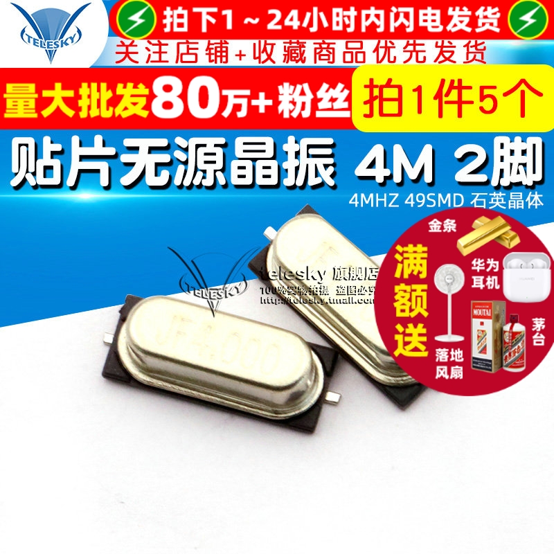 TELESKY 贴片晶振 4M 2脚 4MHZ 49SMD 石英晶体 无源晶振 (5个)