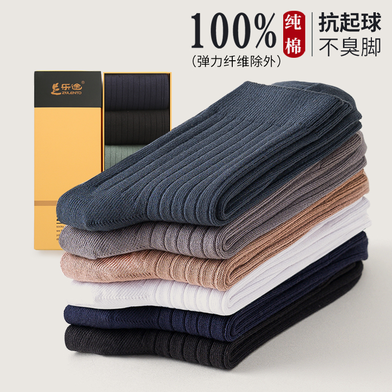 纯棉袜子男士秋冬新款诸暨中筒袜防脚气防臭7a抗菌全棉无骨长筒袜