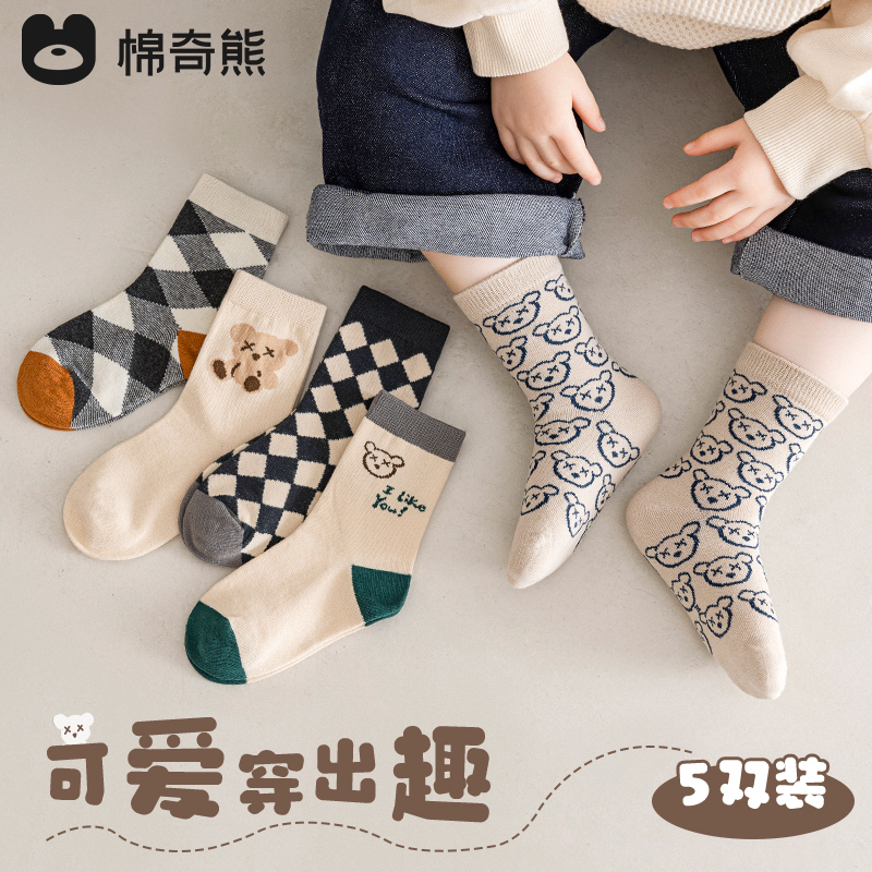 棉奇熊清仓儿童袜子女童男童纯棉秋冬款中筒棉袜断码品质中大童冬
