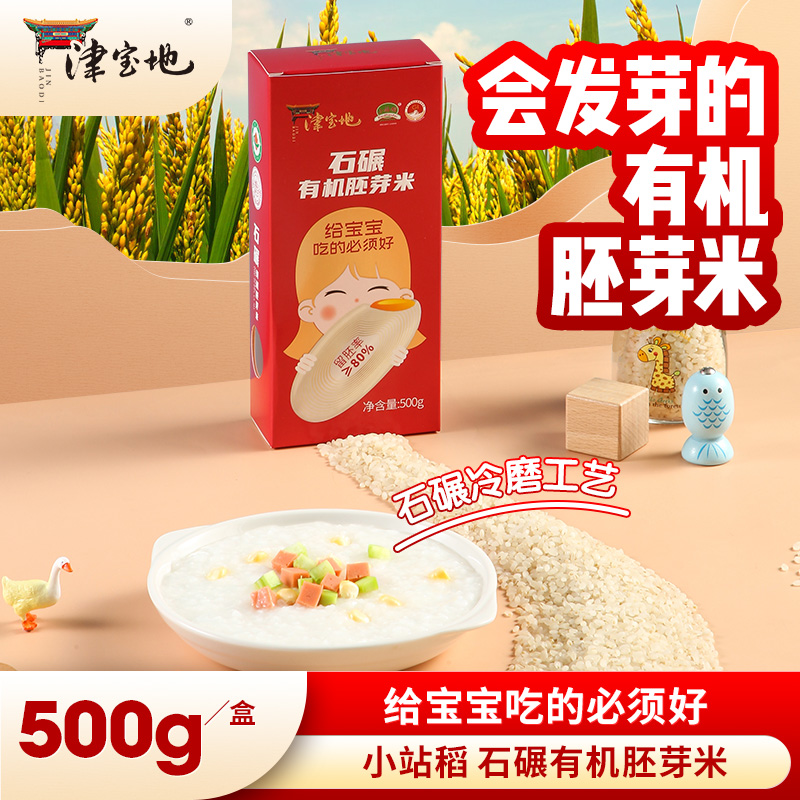 津宝地小站稻有机胚芽米婴幼儿宝宝粥米2025新米石碾大米500g/盒