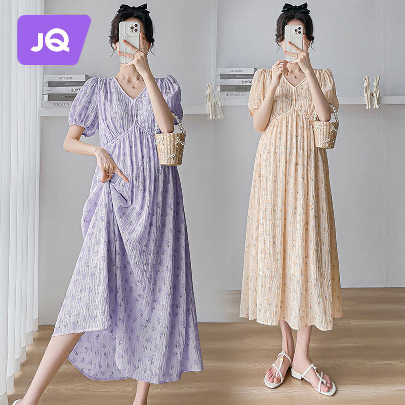 - 碎花连衣裙雪纺长款