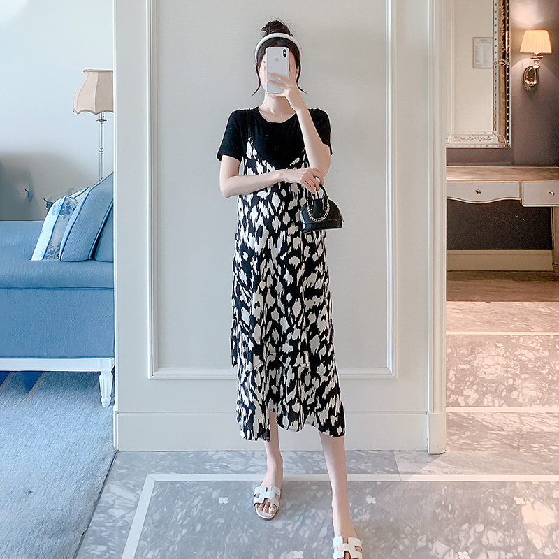 - 长款印花雪纺连衣裙