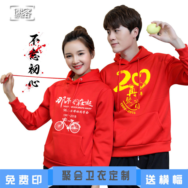 同学聚会卫衣定制同学会20年套头加绒连帽外套定做外嫁女印字logo