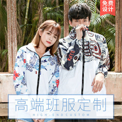 同学聚会全身印班服风衣外套定制 运动会圆领连帽工作服套头卫衣