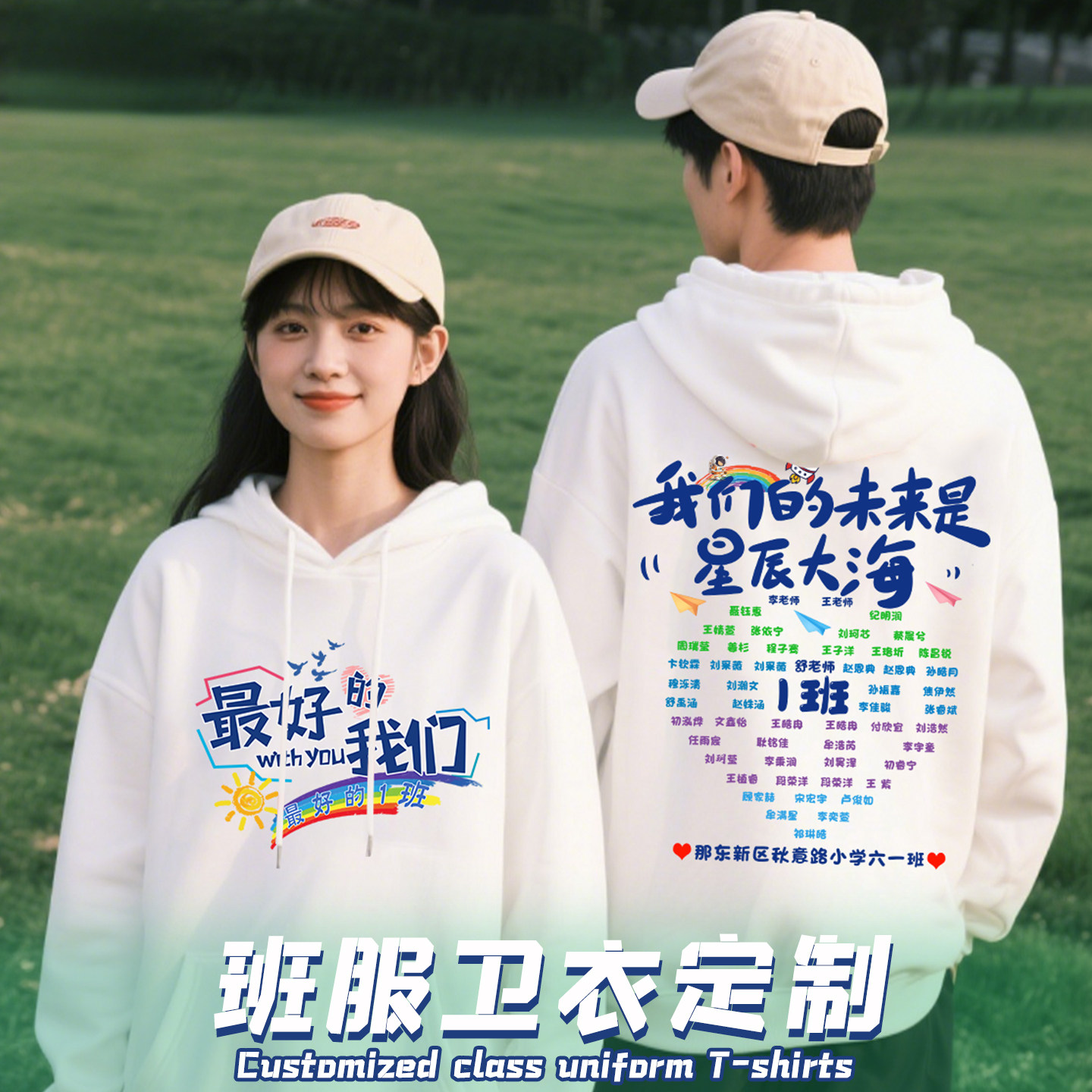 纯棉卫衣定制班服初中生运动会统一演出服20周年毕业同学聚会帽衫