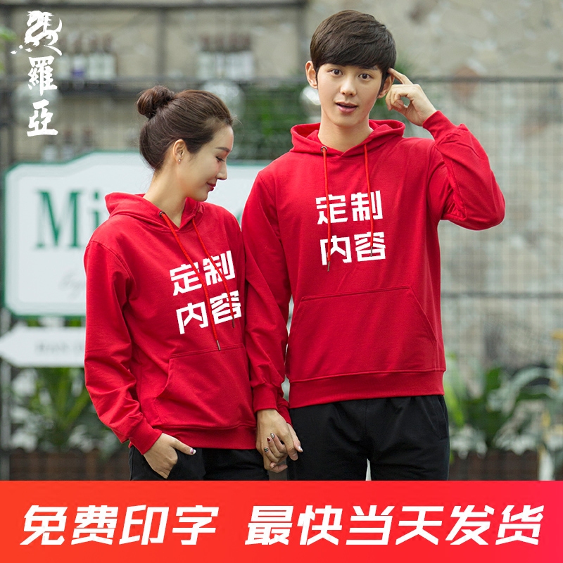 工作服卫衣定制印logo字连帽班服同学聚会运动会秋冬加绒外套订做