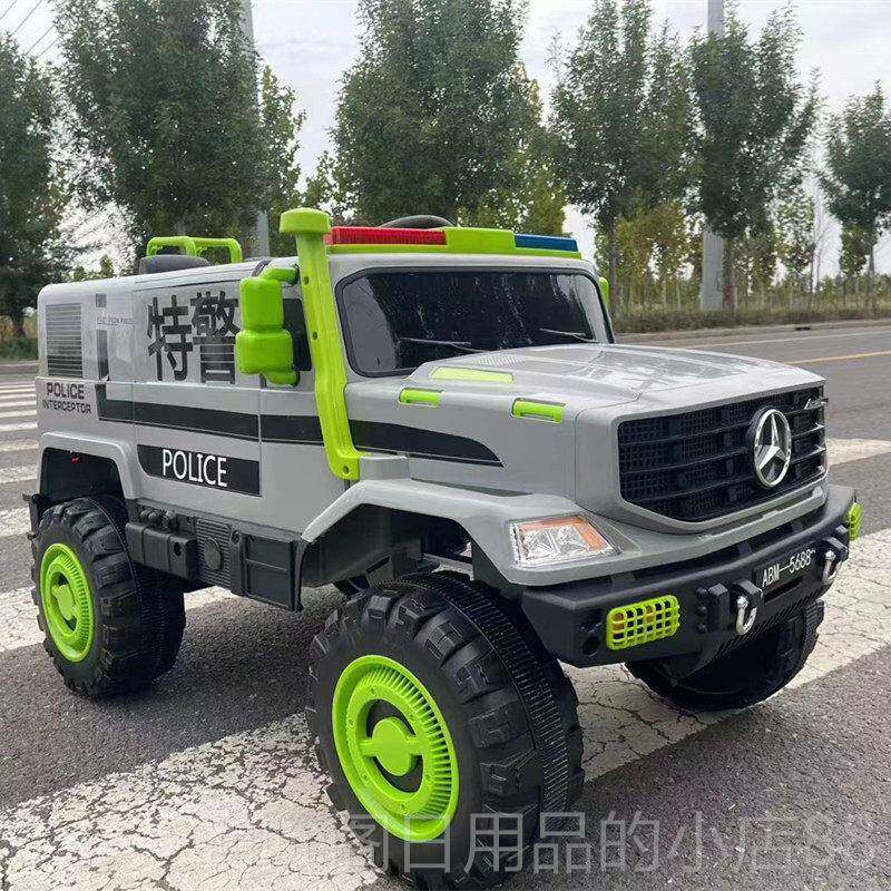高档奔人驰儿童电汽车四遥控警车可坐大动g轮小孩宝宝玩具车四驱