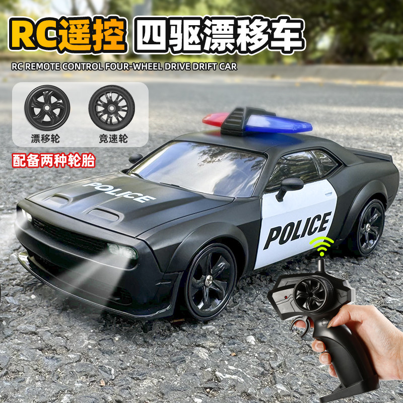 专业rc遥控警车道奇地狱猫四驱漂移车高速赛车1∶24竞速儿童玩具