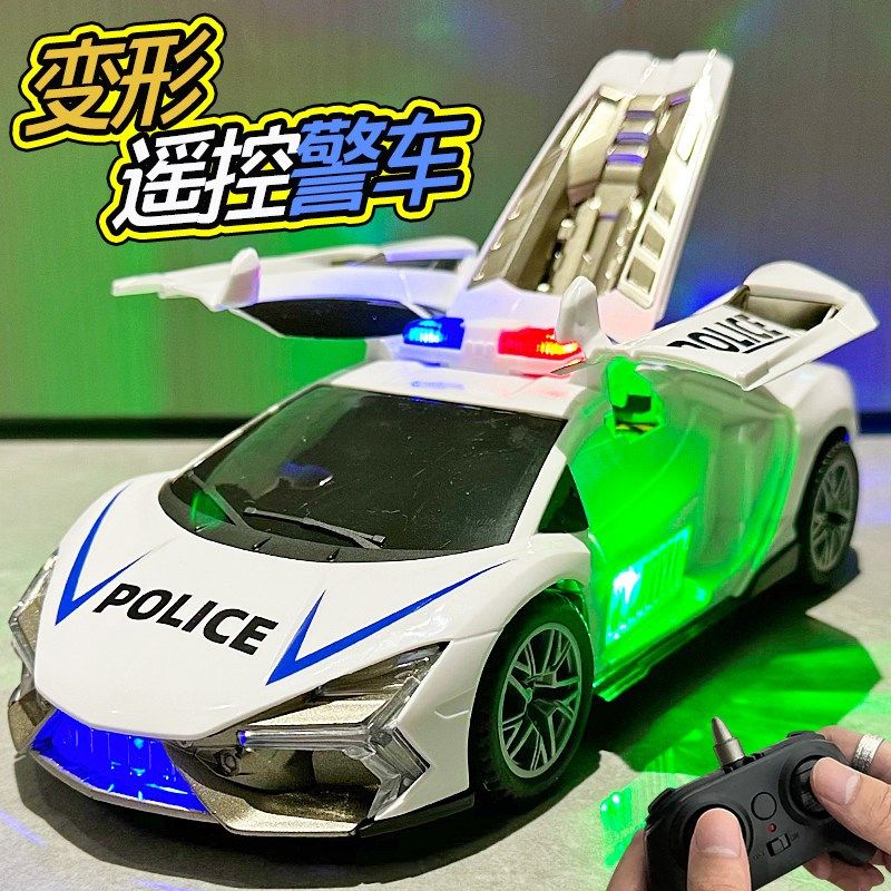 儿童警车玩具遥控变形身男孩小汽车机器人金刚大号警察车六一礼物