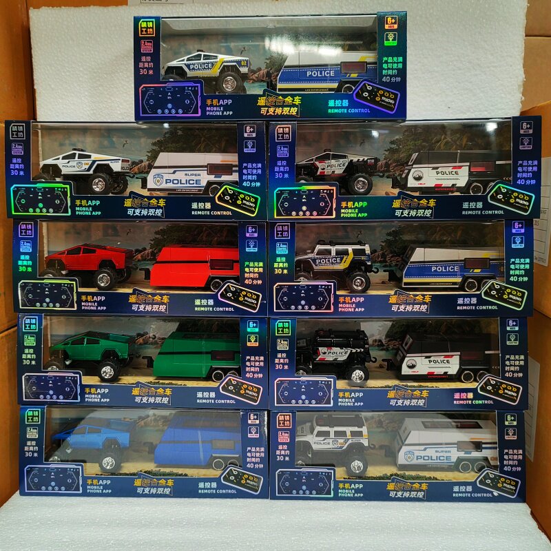 恒冠合金遥控警车带拖车特斯拉超长续航支持双控遥控功能儿童玩具